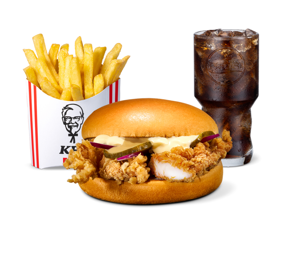 Ateriaan kuuluu kanahampurilainen, jonka täytteenä on Chicken Strips, hunajasinappi majoneesia, suolakurkkua, sekä sipulia. Ateriaan kuuluu limu sekä ranskalaiset. Saatavilla myös isona versiona, jossa suuremmat ranskalaiset ja iso juoma.