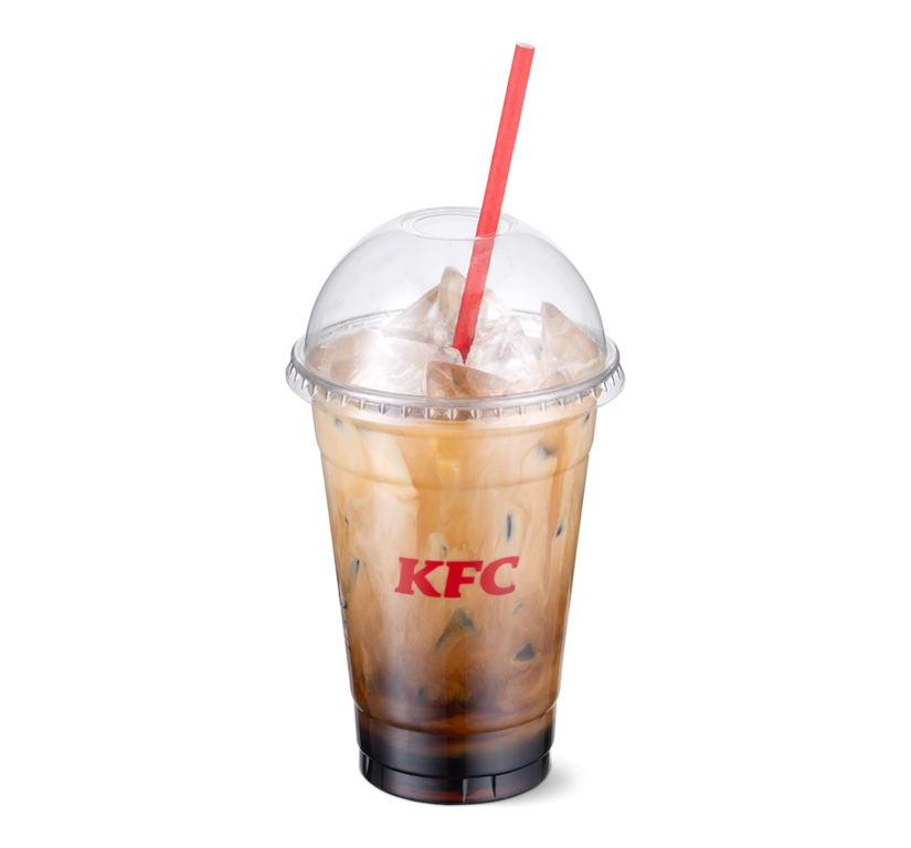 Jäälatte, jossa espressoa, maitoa ja suklaakeksisiirappia jään kera.